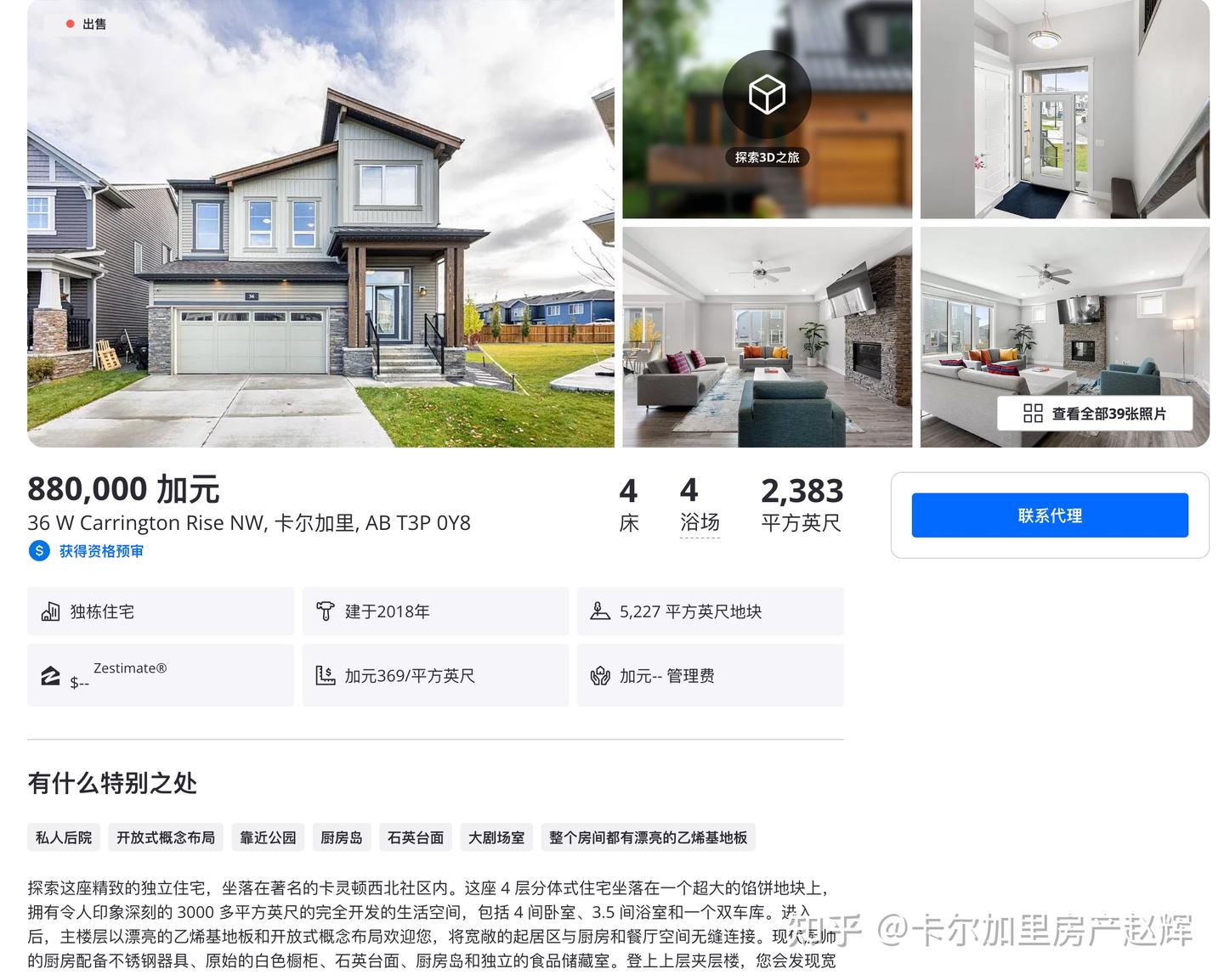 卡尔加里房产赵辉:加拿大卡尔加里 西北 轻奢 亲水 新设计walkout独立屋,附社区介绍