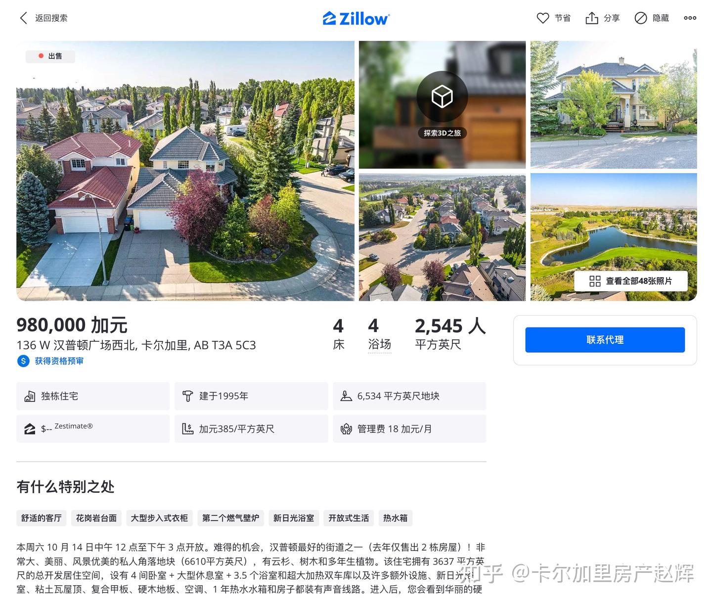 卡尔加里房产赵辉:加拿大卡尔加里 西北 轻奢 亲水 新设计walkout独立屋,附社区介绍