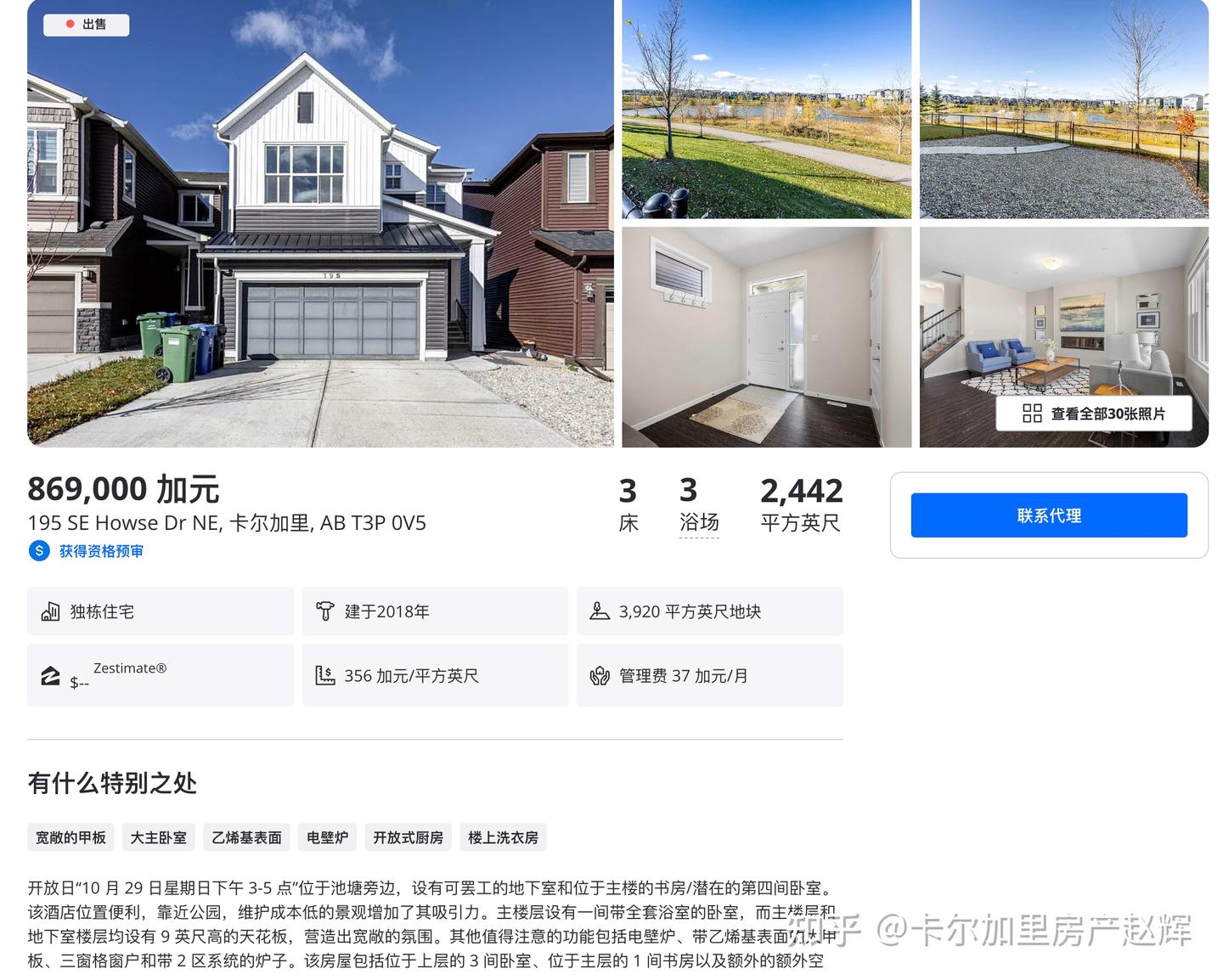 卡尔加里房产赵辉:加拿大卡尔加里 西北 轻奢 亲水 新设计walkout独立屋,附社区介绍