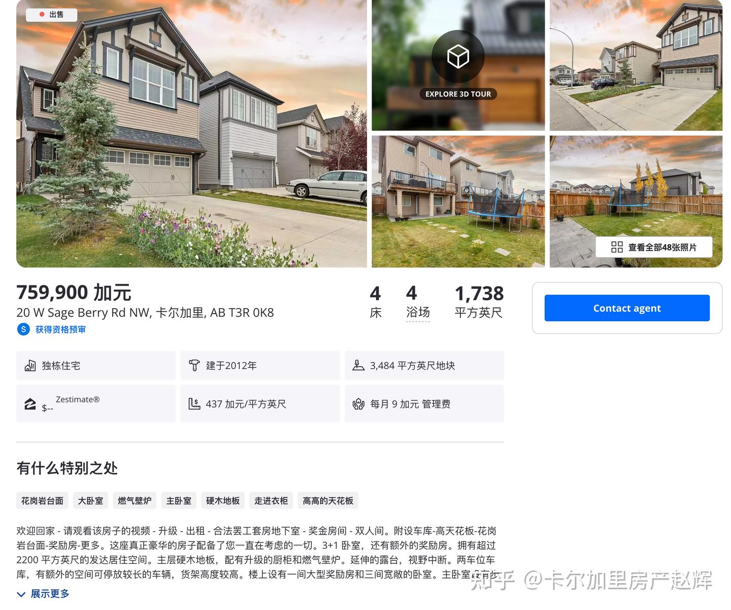 卡尔加里房产赵辉:加拿大卡尔加里 西北 轻奢 亲水 新设计walkout独立屋,附社区介绍