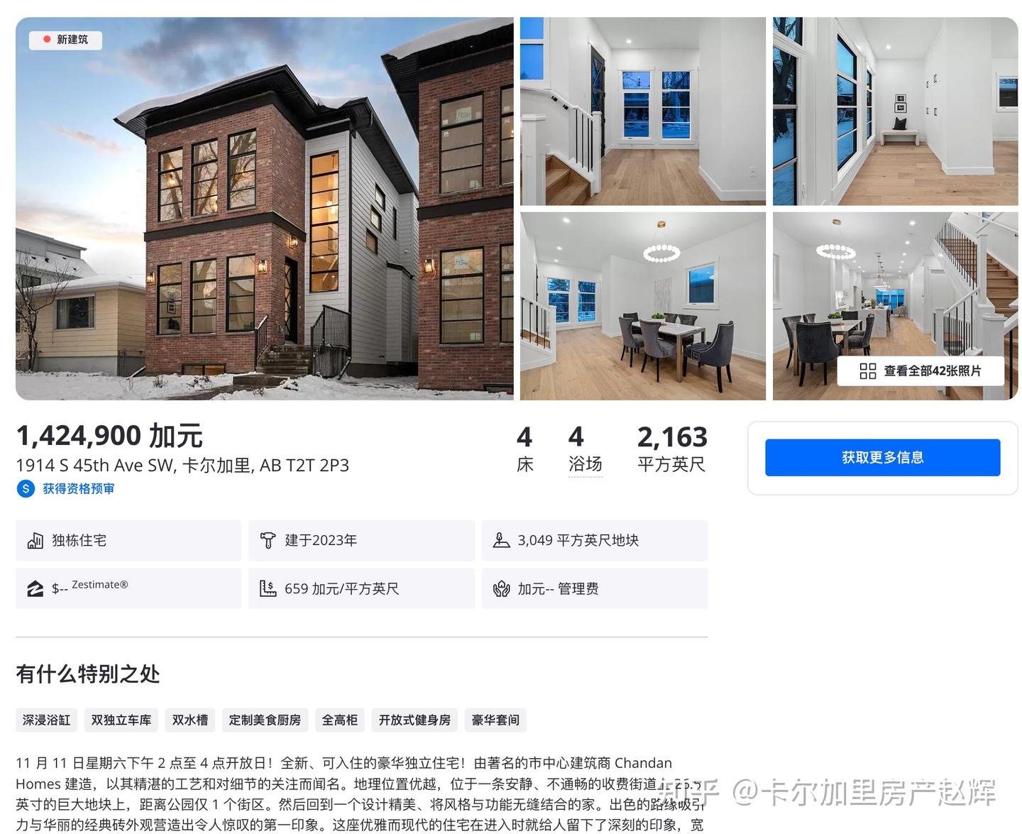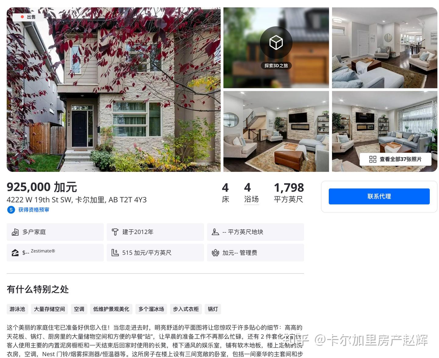 卡尔加里房产赵辉:加拿大卡尔加里 西北 轻奢 亲水 新设计walkout独立屋,附社区介绍