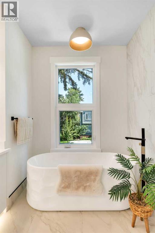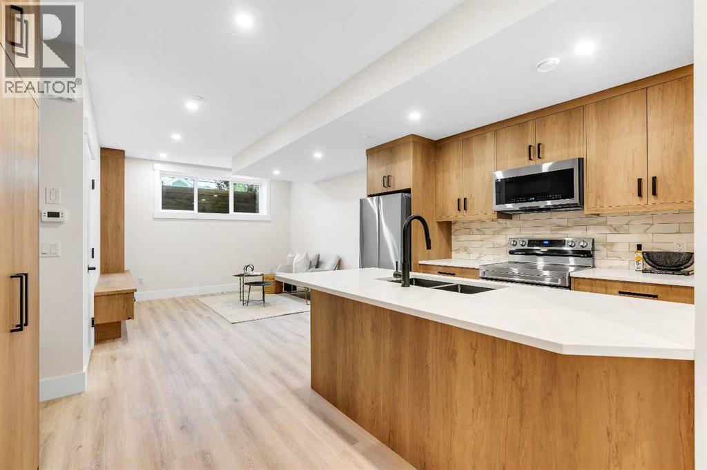 MOVE-IN READY! Striking curb appeal, clean lines, and massive front windows set the tone for this bold, modern SEMI-DETACHED INIFLL tucked onto a quiet street in the heart of RENFREW. From the moment you step inside, you’ll feel the elevated design—natural light pours in from all angles, the layout flows effortlessly, and every detail has been thoughtfully selected for both function and style. The main floor opens with a welcoming front foyer and a bright dining area positioned at the front of the home, perfect for cozy dinners or entertaining guests. The designer kitchen sits at the center, anchoring the space with a large island, quartz countertops, a built-in pantry, and a premium appliance package that includes a gas cooktop and a French door fridge/freezer. At the rear, the living room feels like a retreat, complete with a sleek fireplace, large windows, and easy access to the back deck and a double detached garage. A designer powder room is privately tucked away off the mudroom, and the built-ins here add everyday convenience without compromising on style. Upstairs, you’ll find three bedrooms, including a show-stopping primary suite that spans the entire width of the home. It features vaulted ceilings, a spacious walk-in closet, and a spa-inspired ensuite with a double vanity, soaker tub, tiled shower, and private water closet. Two additional bedrooms, a full bath, and a laundry room with extra storage round out the upper level. Downstairs, you’ll find a LEGAL 1-BEDROOM SUITE (approved by the city) – ideal for rental income, multigenerational living, or guest space. With its own private entrance and mudroom-style bench with hooks, it feels completely independent. Inside, the modern kitchen is finished with quartz counters, custom cabinetry, and a central island for tons of prep space. The suite also includes a generous living area with a large window, a full 4-piece bathroom, in-suite laundry, and a spacious bedroom with a walk-in closet. Living in Ren frew means you’re minutes from some of Calgary’s best-loved amenities. Walk to the Bridgeland restaurant scene, grab coffee at Starbucks or Lukes Drug Mart, or hop on the bike path for a scenic ride along the Bow River. TELUS Spark and the Calgary Zoo are under a 5-minute drive, and the Renfrew Aquatic & Recreation Centre is just up the street for swimming, skating, and gym time. Downtown is only 10 minutes away by car or transit, and access to Deerfoot and 16th Ave makes commuting a breeze. With parks, playgrounds, schools, and community gardens all close by, Renfrew blends inner-city energy with everyday comfort. Whether you’re looking for modern design, income potential, or a walkable inner-city lifestyle, this one checks all the boxes! (id:58331)