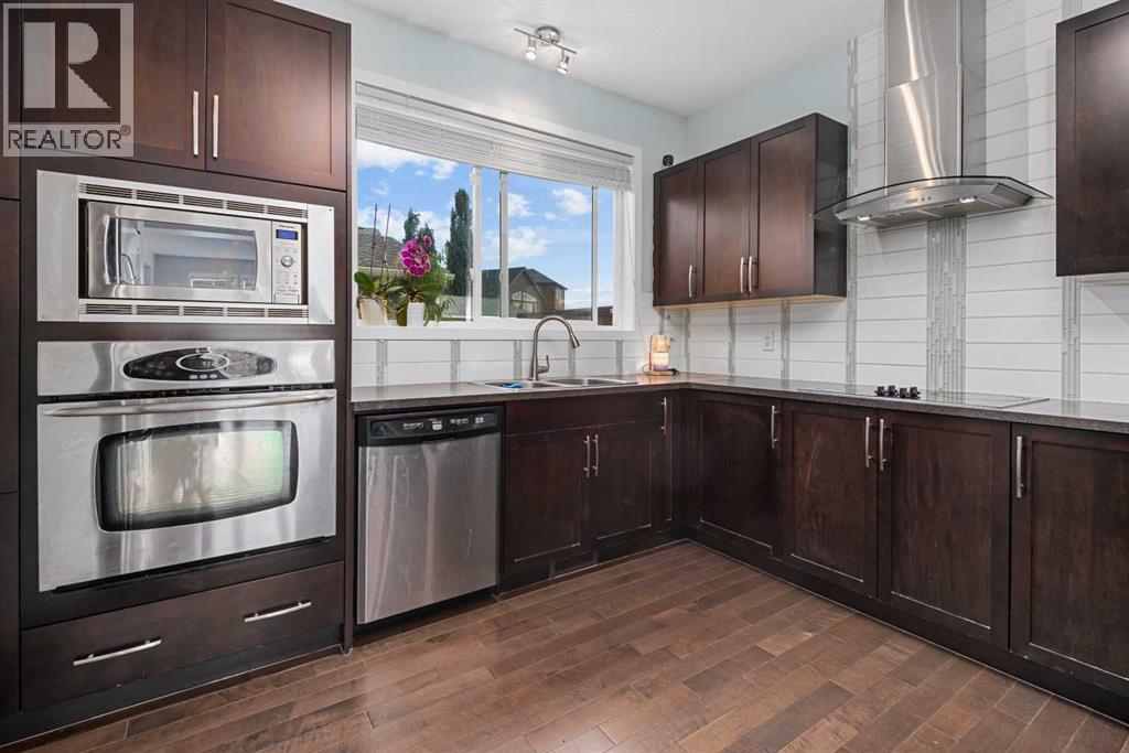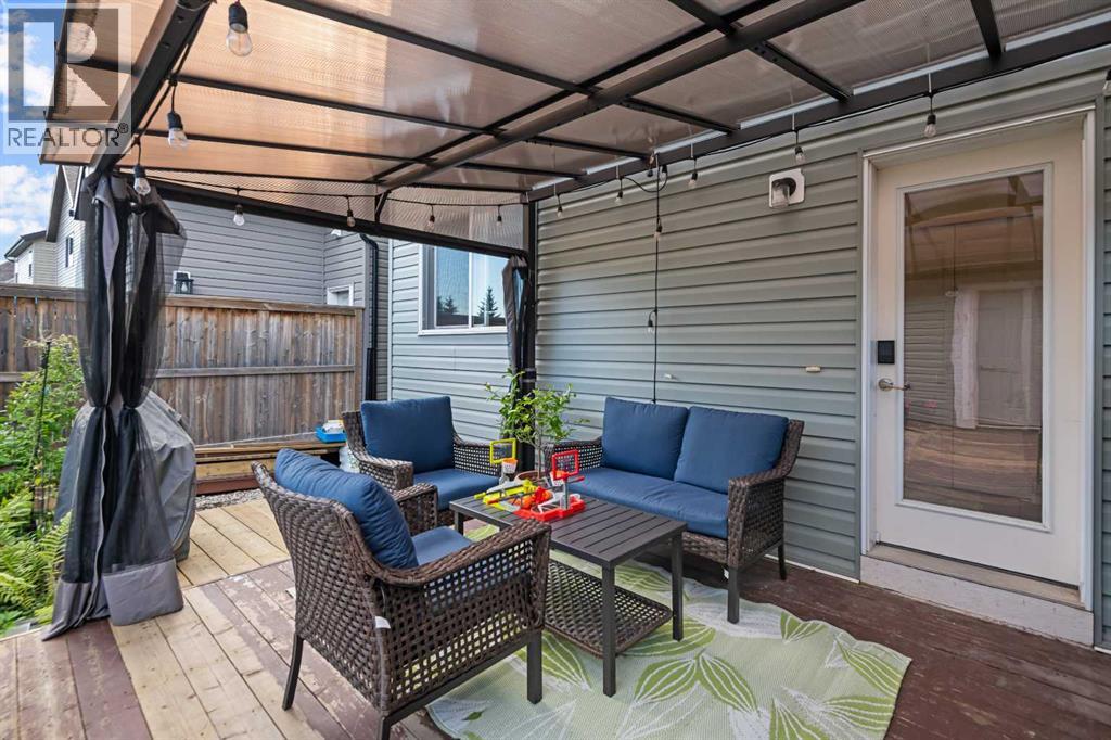Welcome to your future home! a well maintained two-storey home nestled in the heart of the family-friendly community of New Brighton. Built by Jayman, this home will make you feel right at home from the moment you step inside; The mainfloor features HARDWOOD FLOORING, soaring 9FT CEILINGS, and a bright OPEN-CONCEPT layout that offers both functionality and an abudant amount of natural lighting. The chef kitchen is equipped with stainless steel appliances, built-in oven and microwave, a functional and stylish electric cooktop and a range hood, ample storage, making it perfect for everyday living. A 2 pieces half-bathroom completes this floor. Just off the back mudroom, step outside to your own private retreat — a cozy deck complete with a pergola, surrounded by thoughtfully designed landscaping that’s as stunning as it is low maintenance. Upstairs, you'll find a spacious primary bedroom with a private ensuite, along with two additional well-sized bedrooms and a full bathroom. A convenient laundry room completes the upper level. The fully finished basement adds even more living space, featuring LVP flooring, a built-in electric fireplace, a large rec area, an additional bedroom, and a full bathroom — ideal for guests, older children, or extended family. This home is ideally located within walking distance of parks, schools, and the New Brighton Club, which offers fantastic amenities like a splash park, tennis courts, and skating rink. With quick access to both Deerfoot and Stoney Trail, commuting is a breeze and all parts of the city are within easy reach. Whether you're a growing family or simply looking for a turn-key home in a well-connected community, this will impress your whole family. Call your favorite Realtor today! (id:58331)