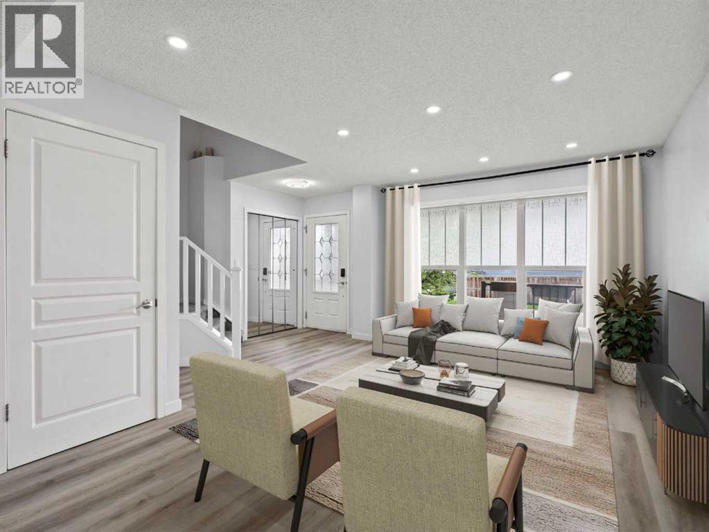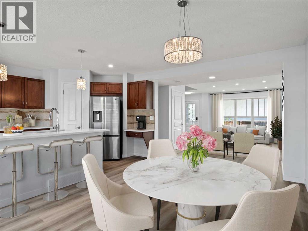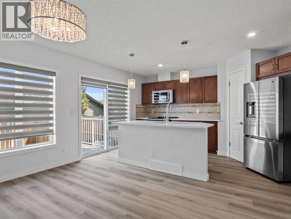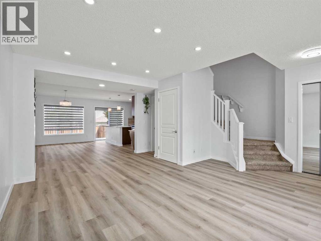 This beautiful 3-bedroom, 2.5-bathroom home combines modern upgrades with a family-friendly layout. Soaring 9ft ceilings and oversized windows make each room feel bright, open, and inviting. The entire main level is enhanced by automatic window coverings for both style and convenience.Enjoy brand new vinyl plank flooring throughout the main floor and fully finished basement, complemented by stone countertops in the kitchen and bathrooms. The basement offers a versatile layout ideal for a rec room, pool table, play area, or home gym, with a rough-in for a 4-piece bathroom allowing you to personalize the space even further.Recent upgrades include a new roof and siding completed in 2023, offering both peace of mind and long-lasting curb appeal. (id:58331)