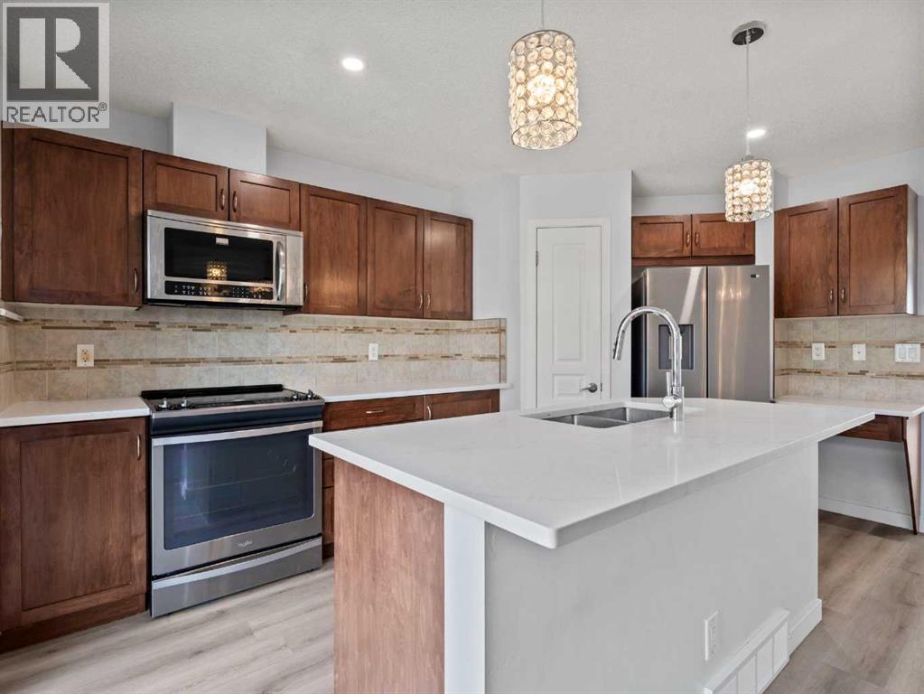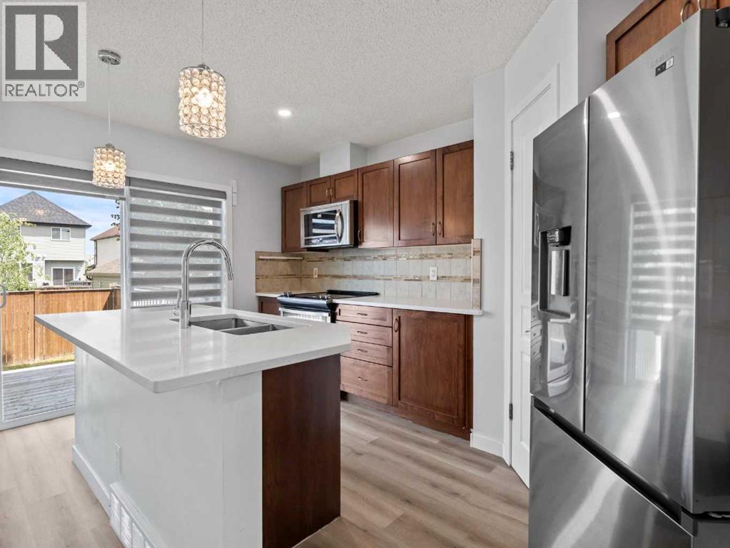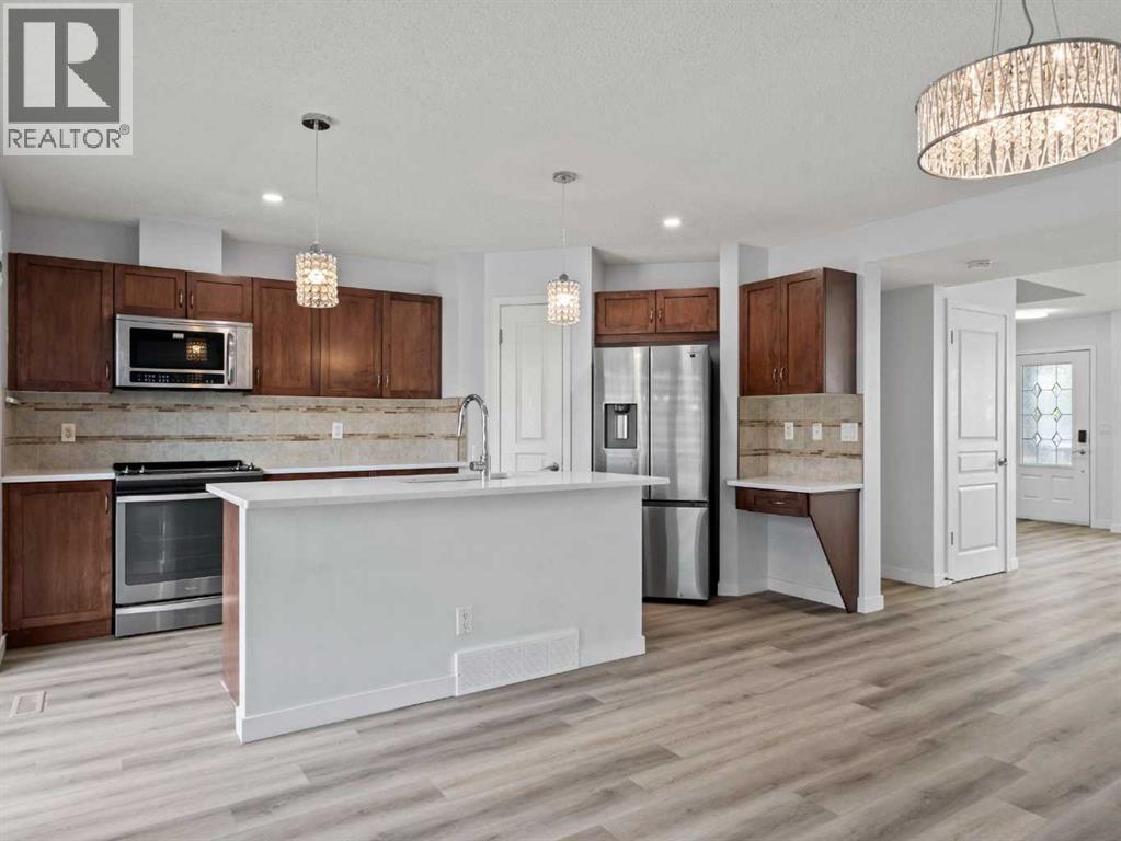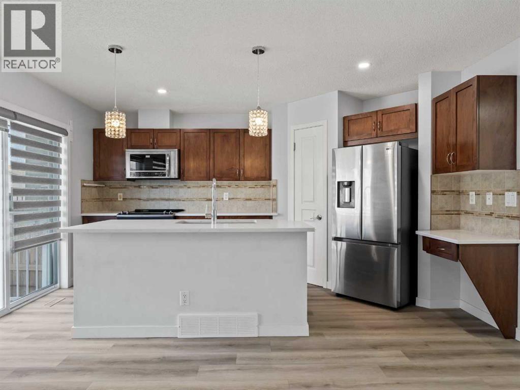This beautiful 3-bedroom, 2.5-bathroom home combines modern upgrades with a family-friendly layout. Soaring 9ft ceilings and oversized windows make each room feel bright, open, and inviting. The entire main level is enhanced by automatic window coverings for both style and convenience.Enjoy brand new vinyl plank flooring throughout the main floor and fully finished basement, complemented by stone countertops in the kitchen and bathrooms. The basement offers a versatile layout ideal for a rec room, pool table, play area, or home gym, with a rough-in for a 4-piece bathroom allowing you to personalize the space even further.Recent upgrades include a new roof and siding completed in 2023, offering both peace of mind and long-lasting curb appeal. (id:58331)