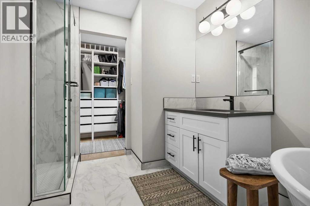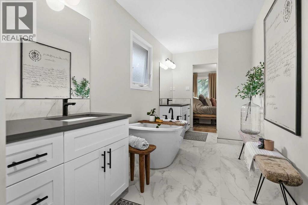 Welcome to 7707 67th Ave NW, an immaculate and masterfully curated home, with thoughtful renovations throughout. A fully developed bungalow, nestled in one of Calgary's most sought after and mature neighbourhoods. With an expansive layout, this home offers unparalleled comfort and functionality, perfect for those seeking a peaceful retreat with all the modern upgrades. From the moment you step inside, the open concept design and meticulous renovations are evident. The main floor features gleaming floors, elegant finishes, and large windows that invite an abundance of natural light. The spacious living areas flow seamlessly, creating a warm and welcoming atmosphere throughout. One of the many highlights of this home is undoubtedly the incredible outdoor living space; featuring an incredible custom deck off the main floor, capitalizing on the sweeping views of the surrounding area—an ideal spot for morning coffee or evening gatherings with family and friends. The exterior also boasts a beautifully maintained yard, providing both privacy, scenic beauty and mature landscaping. A true sanctuary awaits in the spectacular primary bedroom, designed for ultimate relaxation. This spacious retreat features a generous walk-in closet that offers abundant storage space and a gorgeous ensuite that feels like a private spa. The ensuite is fixtured with luxurious finishes, including a soaking tub, a glass-enclosed shower and twinned vanities; creating the perfect setting for unwinding after a long day. With a fully developed walkout basement, this bungalow is designed to maximize both living space and functionality. The lower level offers additional living and recreational areas, featuring two additional bedrooms, an additional full bathroom, family room and a large bonus/flex space. All renovated to the same standards as the upper level of the home. Giving you plenty of room for relaxation, entertainment, a large family or home office setup, or even an in-law suite.. The home featu res an attached two-car garage, perfect for keeping your vehicles sheltered from the elements, as well as a detached single-car garage with rear alley access—ideal for extra storage or even a workshop for hobbies. Convenience is key, with main floor laundry adding an extra layer of practicality to everyday life. Every inch of this property has been thoughtfully updated and renovated to meet modern standards, while still retaining the charm and character of a classic bungalow from this period. Situated in a quiet and peaceful location, yet just minutes from essential amenities, schools, the University, hospital and parks, this home truly offers the best of both worlds. Don’t miss out on the opportunity to make 7707 67th Ave NW your new home—a true gem in Calgary's real estate market. (id:58331)